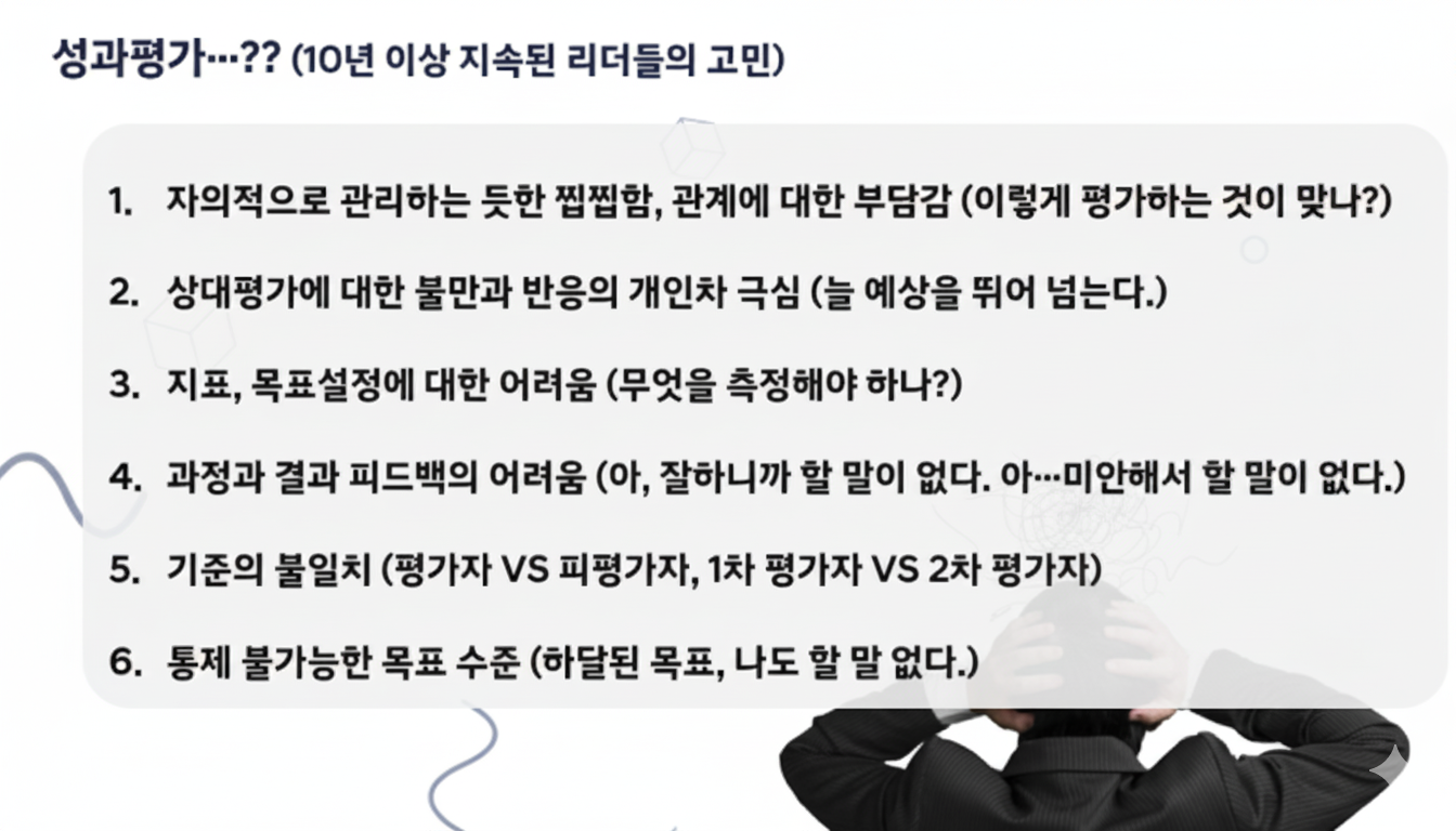 요즘에 리더들에게 큰 숙제가 남아있습니다. 바로 성과평가입니다.